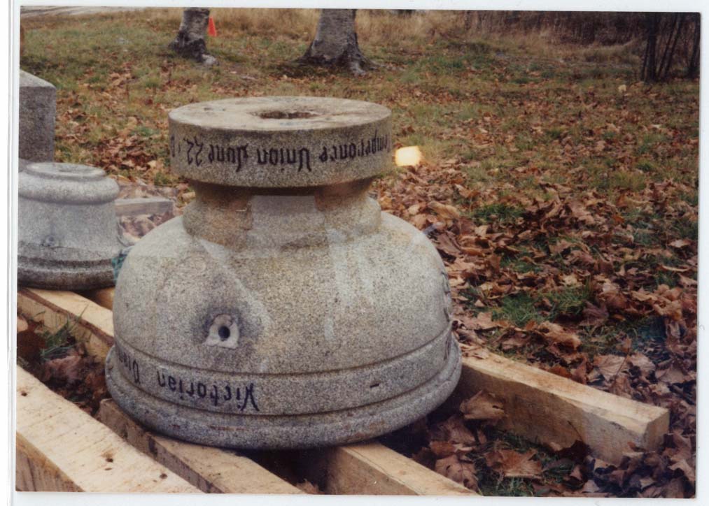 Interestingly, the City’s Archives has a document, with the following photographs, dated 1987, that shows the fountain disassembled, 100 kilometers north of Montreal, in Saint-Gabriel-de-Brandon. How the fountain ended up there is a question – one can speculate that it was given to a City employee who moved it to a country property.