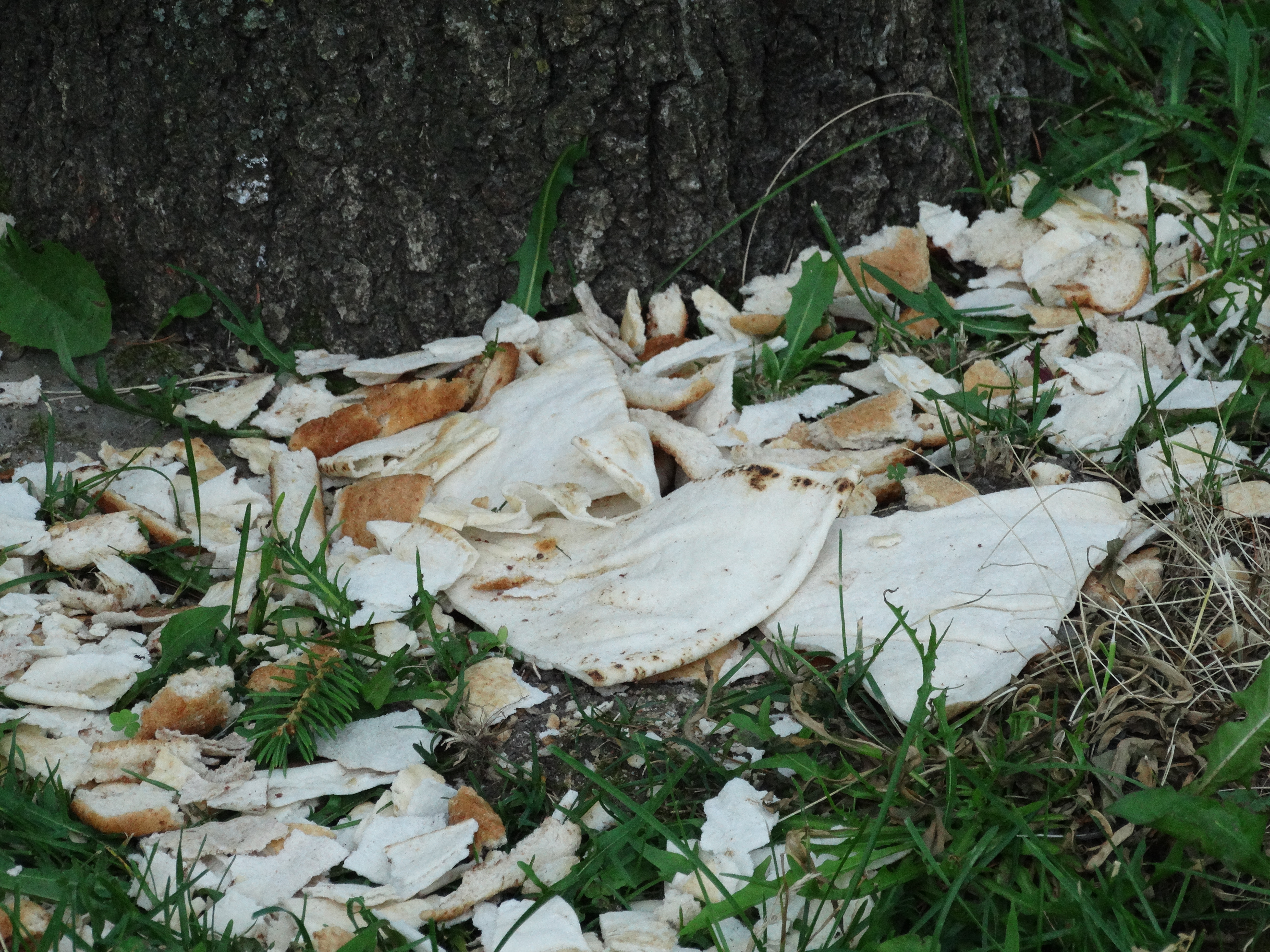 I noticed this pile of pita bread, left untouched, over a twelve hour period under a tree. I have also seen baguettes, and every other assortment of bread.