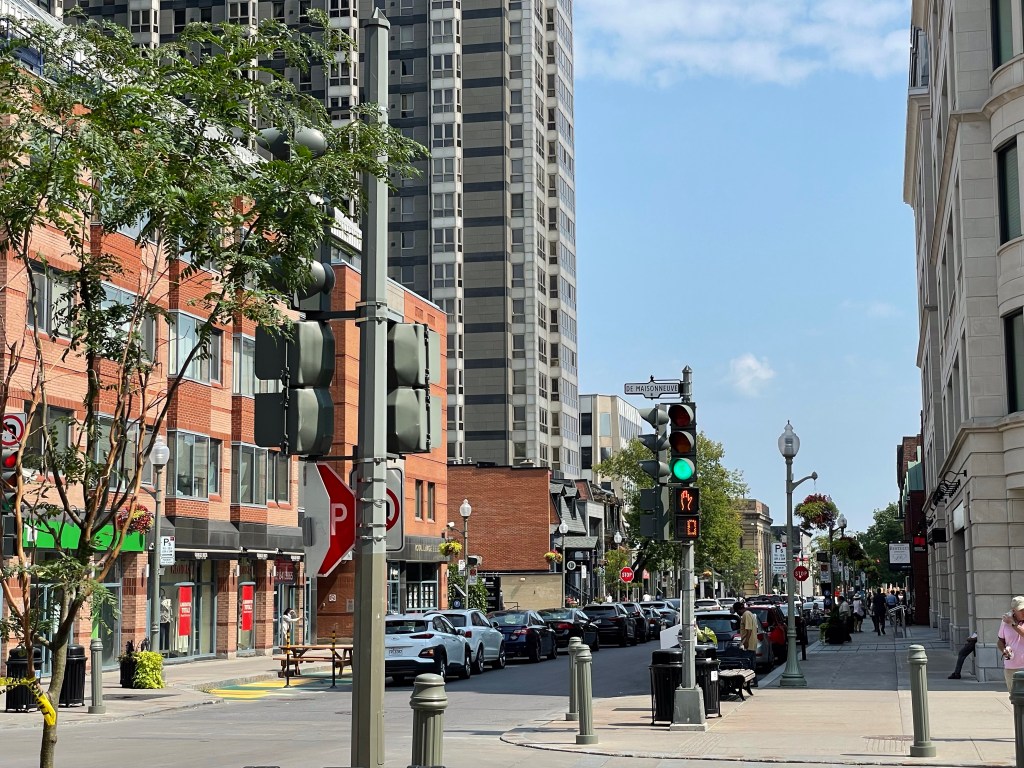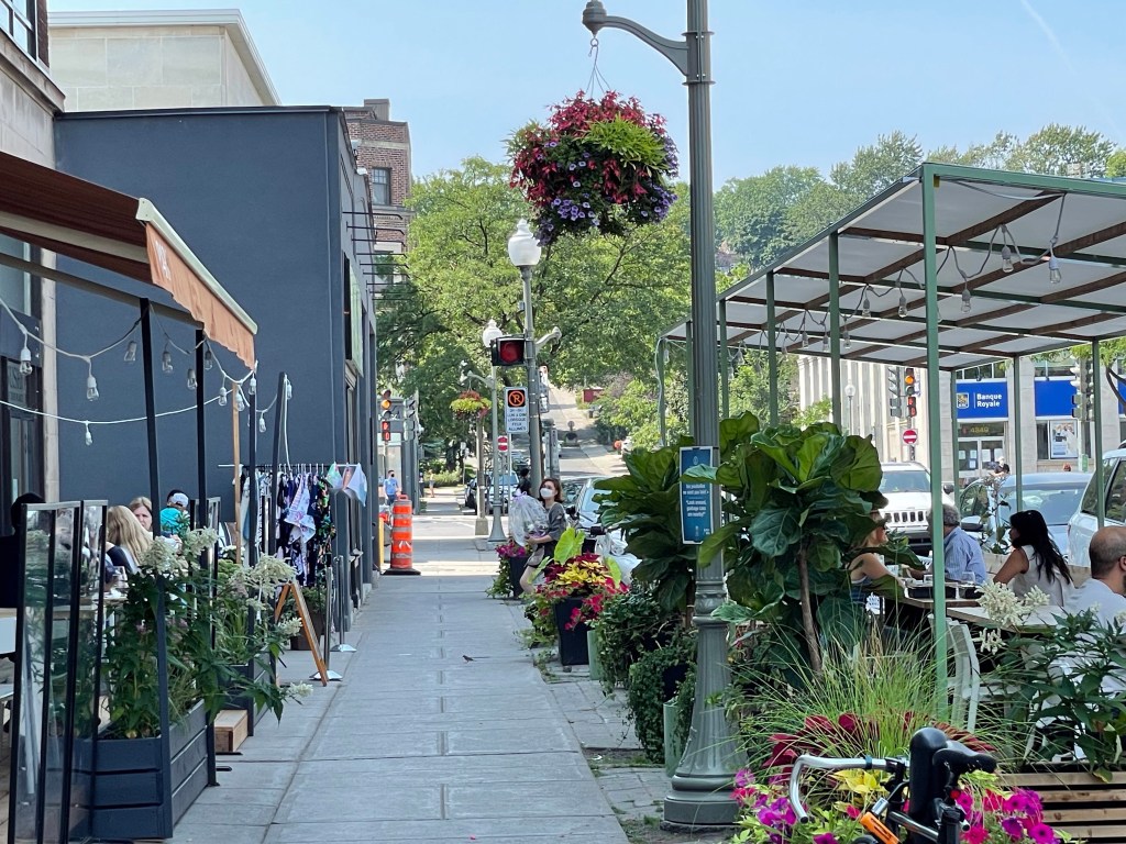 Westmount’s Victoria Avenue sporting “pedestrian islands” that transform the street during the summer.